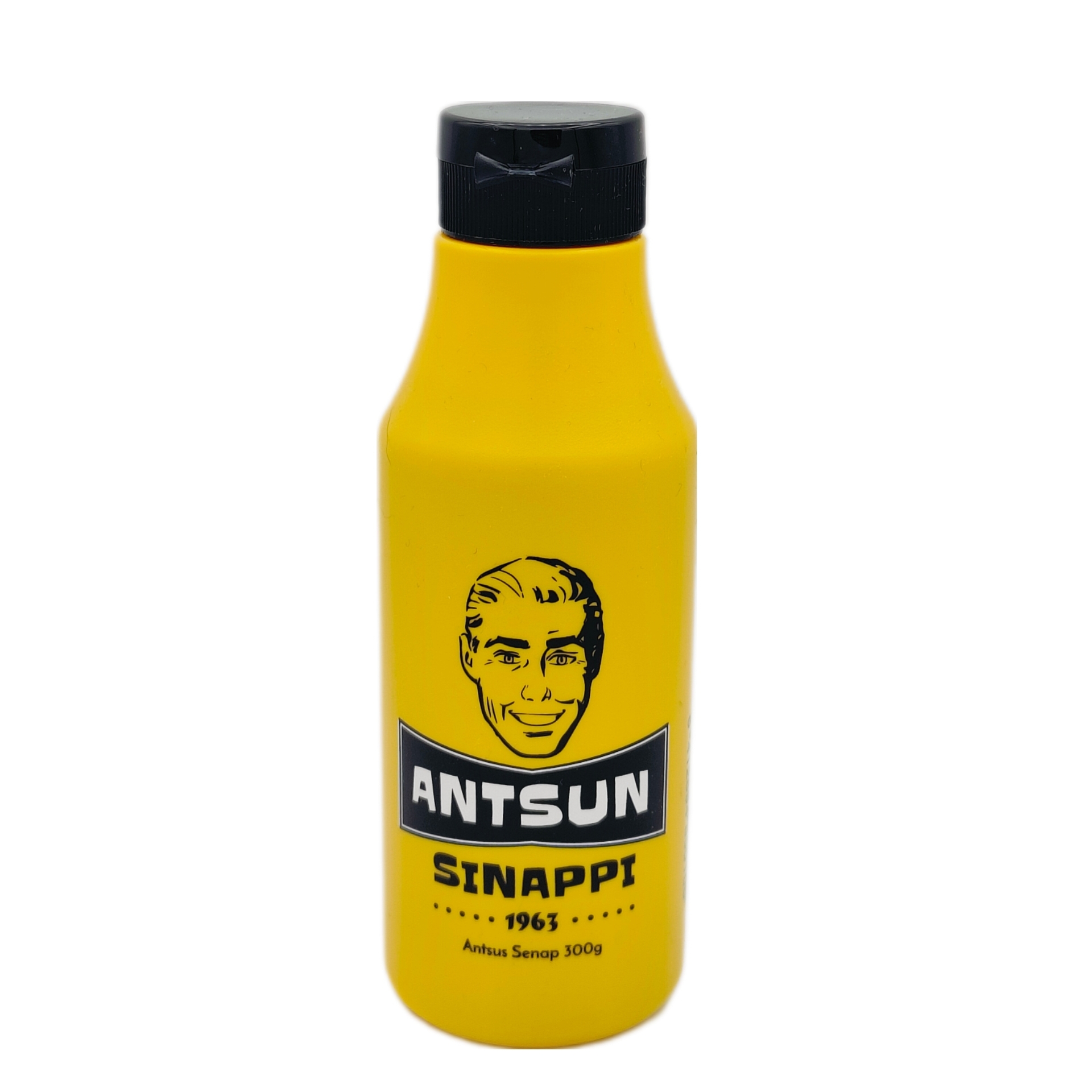 Antsun Sinappi valmistetaan aina parhaista, ensiluokkaisista raaka-aineista alkuperäisellä kultaisen 60- luvun reseptillä. Makea, aromikas, sopivan väkevä sinappi pysyy makkaralla ja maustaa lempiruokasi varmoin ottein. Jääkaapin luottotuote.