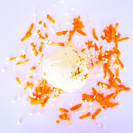 INGREDIENSER: Mjölk (D-vitamin), grädde, morot, socker, stärkelsesirap, färskost (mjölk, grädde, salt, startkultur), äggula, mandel,