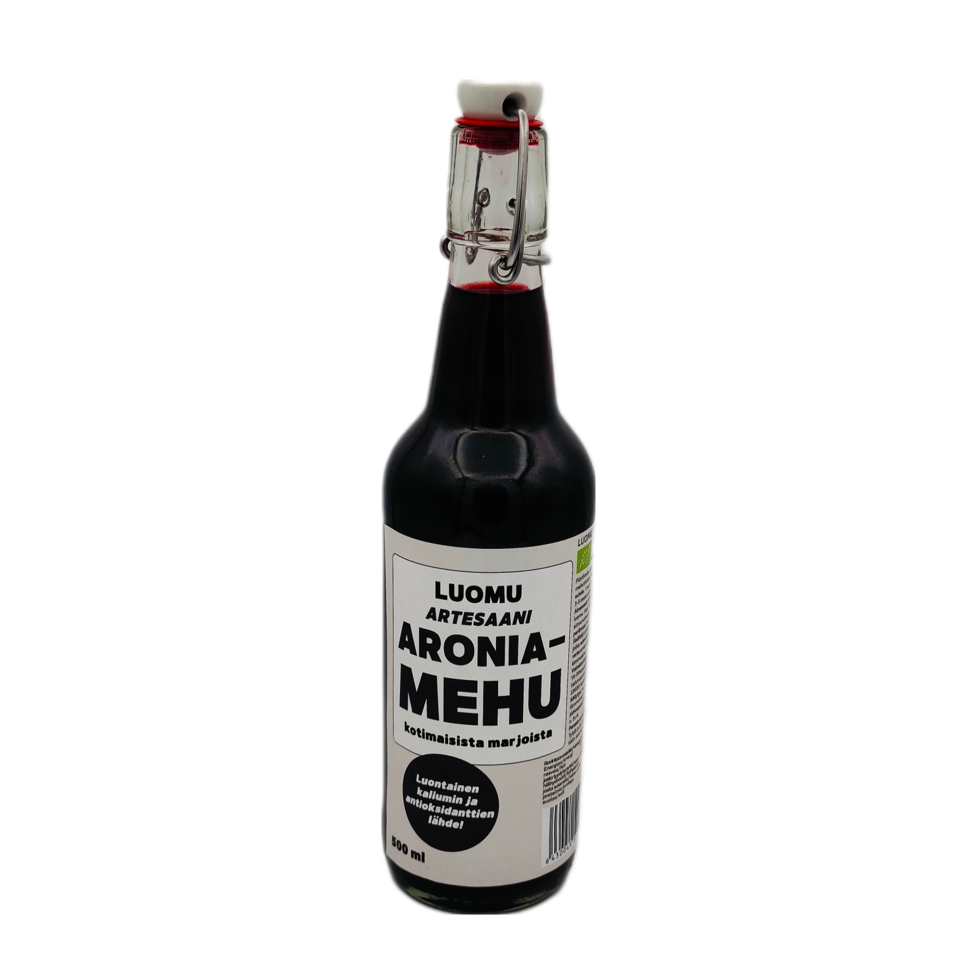 Aineosat: Aronia(luomu), vesi, sokeri, sitruunahappo. Alkuperämaa: Suomi/Finland. Sisältää antosyaaneja, jotka edesauttavat verisuonten pysymistä kimmoisina.