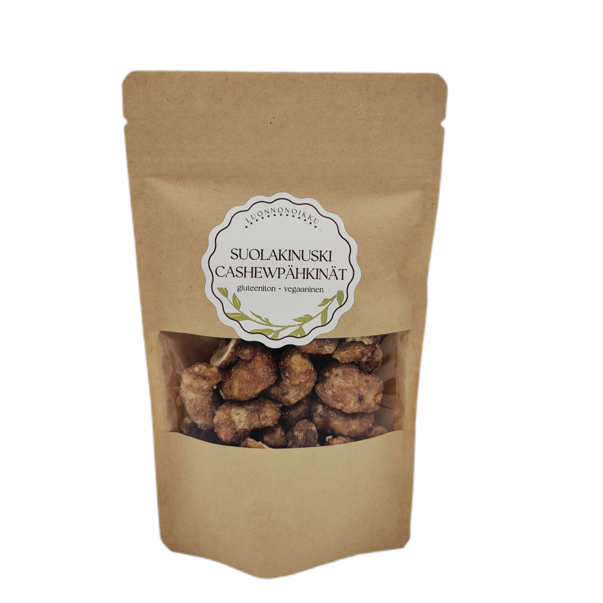 Ainesosat: CASHEWPÄHKINÄ 65%, sokeri 34%, suola 1%
