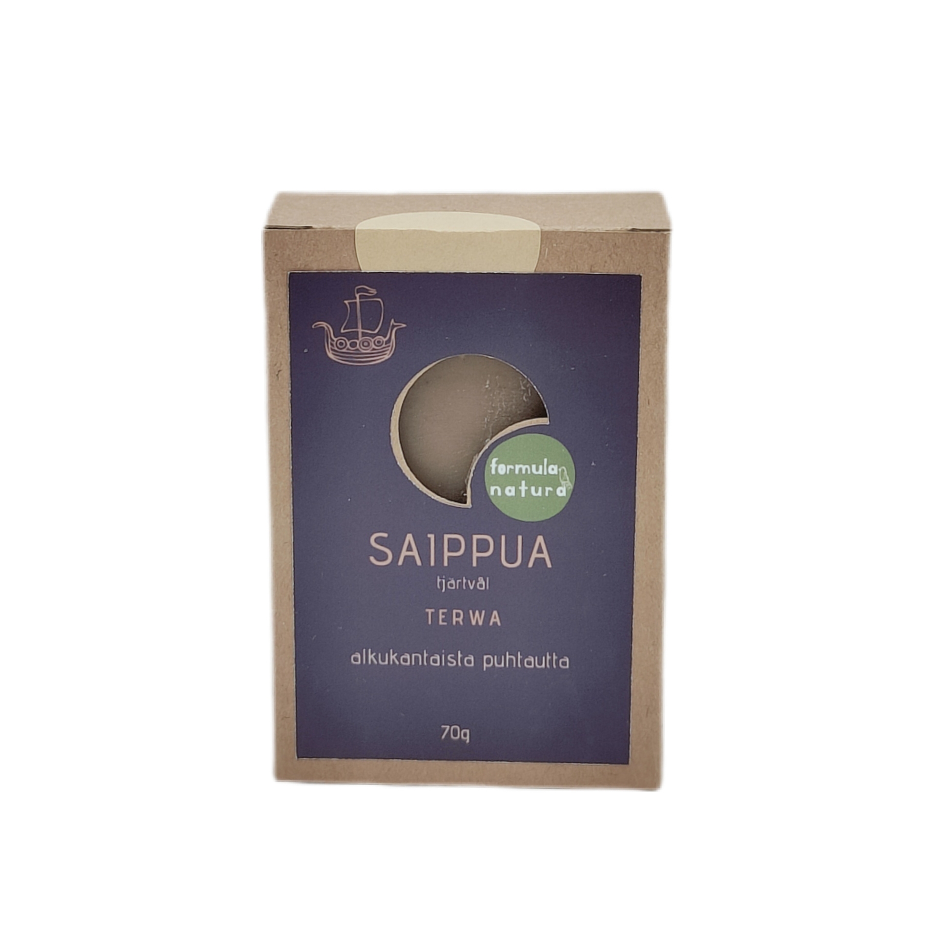 Koko vartalon pesuun. Perinteinen suomalainen saippua, jossa on aitoa mäntytervaa. Terva on tunnettu ihoa rauhoittavista, puhdistavista ja antibakteerisista ominaisuuksistaan. Saippua sopii monenlaiselle iholle ja voi helpottaa kuivuutta, hilseilyä ja kutinaa. Metsäinen tervan tuoksu tuo perinteisen pesukokemuksen ja voi auttaa myös neutraloimaan hajuja, kuten kalan tuoksua. Voidaan käyttää kasvoille, vartalolle ja hiuksille.